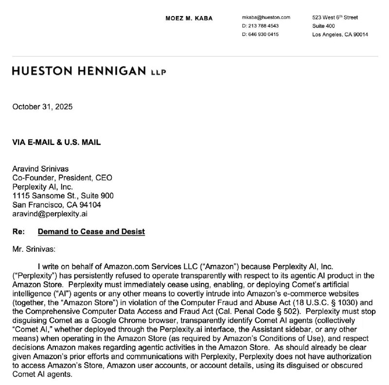 一封来自亚马逊的律师函,让硅谷的空气陡然紧张。