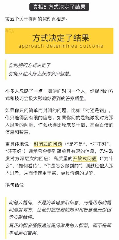 真相5 方式决定了结果(approach determines outcome):你的提问方式决定了你能从他人身上获得多少智慧。